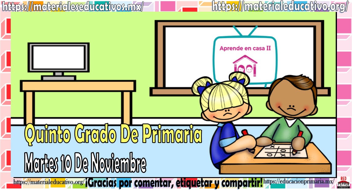 Amigos, compañeros docentes, padres de familia y alumnos que nos visitan, como ya es costumbre nosotros les proporcionaremos las clases contempladas para observarse en la TV del programa aprende en casa II, lo que antes se conocía como videos y preguntas. En esta oportunidad les queremos proporcionar las clases del quinto grado de primaria del martes 10 de noviembre del 2020 del presente ciclo escolar 2020 – 2021, estaremos seguros que con este material podrá facilitar la realización de las actividades planteadas por parte del programa. Muchas gracias por visitarnos y recuerden que aquí podrán encontrar las preguntas, videos y todas las clases del programa de aprende en casa 2. Recuerden compartir nuestros enlaces en sus redes sociales y etiquetar a sus compañeros y amigos docentes en nuestras publicaciones.