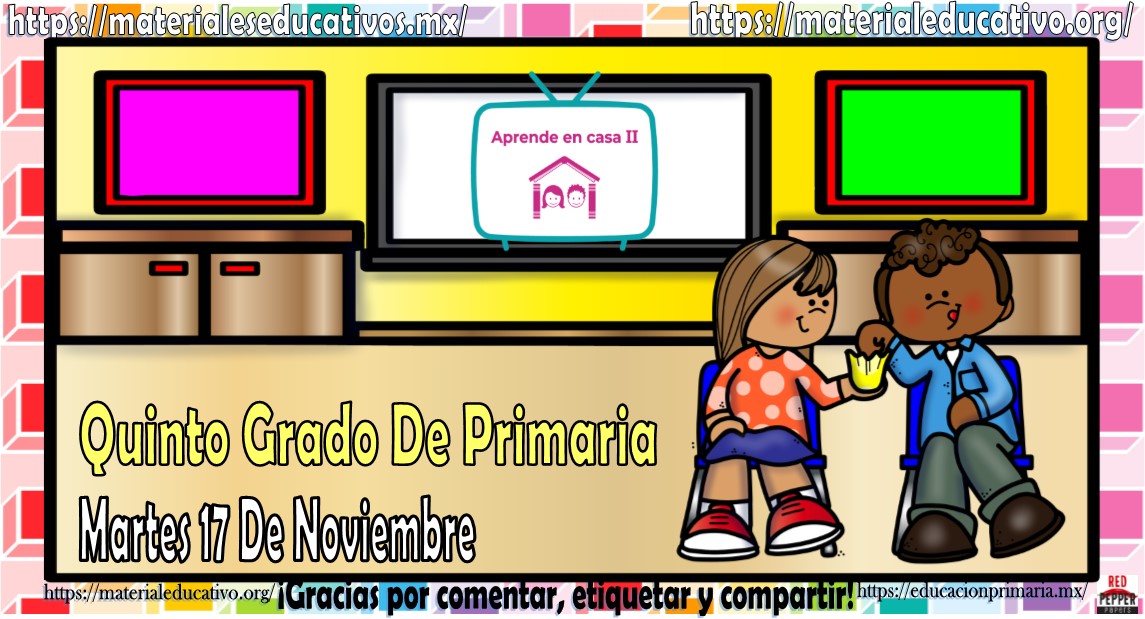 Amigos, compañeros docentes, padres de familia y alumnos que nos visitan, como ya es costumbre nosotros les proporcionaremos las clases contempladas para observarse en la TV del programa aprende en casa II, lo que antes se conocía como videos y preguntas. En esta oportunidad les queremos proporcionar las clases del quinto grado de primaria del martes 17 de noviembre del 2020 del presente ciclo escolar 2020 – 2021, estaremos seguros que con este material podrá facilitar la realización de las actividades planteadas por parte del programa. Muchas gracias por visitarnos y recuerden que aquí podrán encontrar las preguntas, videos y todas las clases del programa de aprende en casa 2. Recuerden compartir nuestros enlaces en sus redes sociales y etiquetar a sus compañeros y amigos docentes en nuestras publicaciones.