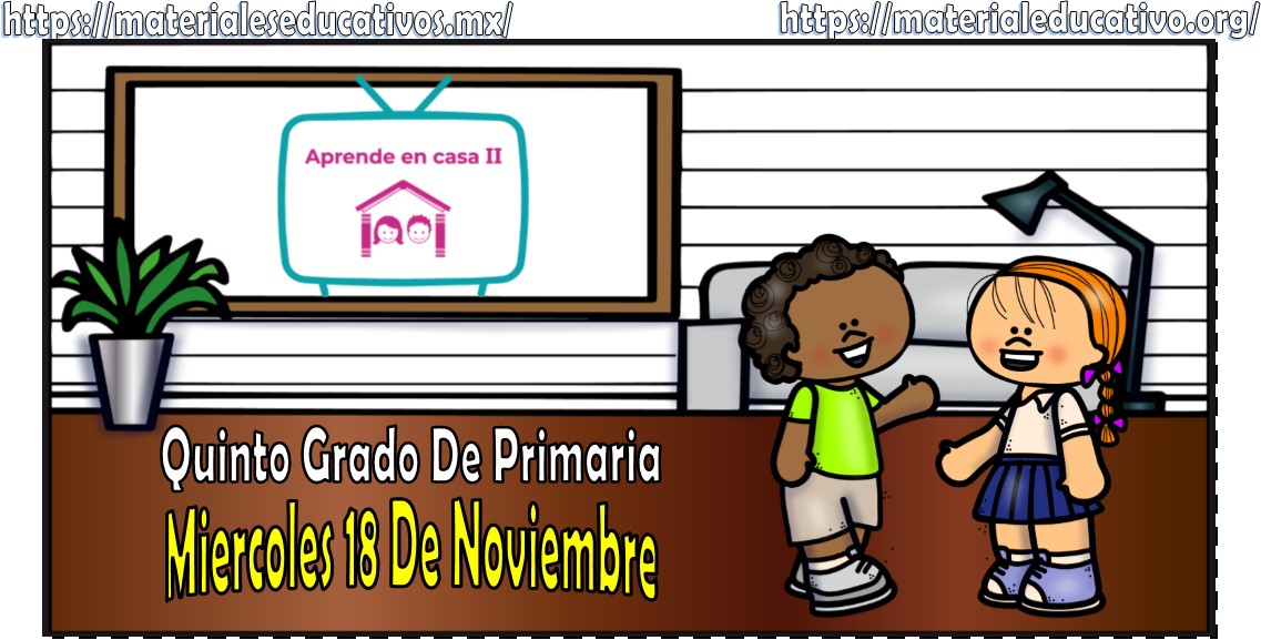 Amigos, compañeros docentes, padres de familia y alumnos que nos visitan, como ya es costumbre nosotros les proporcionaremos las clases contempladas para observarse en la TV del programa aprende en casa II, lo que antes se conocía como videos y preguntas. En esta oportunidad les queremos proporcionar las clases del quinto grado de primaria del miércoles 18 de noviembre del 2020 del presente ciclo escolar 2020 – 2021, estaremos seguros que con este material podrá facilitar la realización de las actividades planteadas por parte del programa. Muchas gracias por visitarnos y recuerden que aquí podrán encontrar las preguntas, videos y todas las clases del programa de aprende en casa 2. Recuerden compartir nuestros enlaces en sus redes sociales y etiquetar a sus compañeros y amigos docentes en nuestras publicaciones.