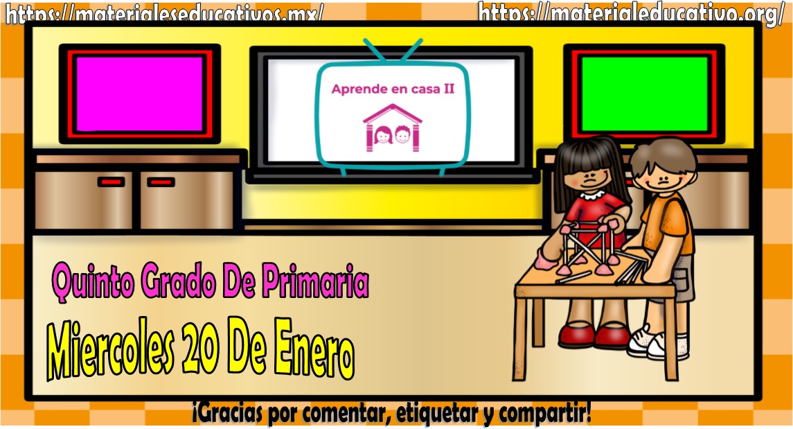 Amigos, compañeros docentes, padres de familia y alumnos que nos visitan, como ya es costumbre nosotros les proporcionaremos las clases contempladas para observarse en la TV del programa aprende en casa II, lo que antes se conocía como videos y preguntas. En esta oportunidad les queremos proporcionar las clases del quinto grado de primaria del miércoles 20 de enero del 2021 del presente ciclo escolar 2020 – 2021, estaremos seguros que con este material podrá facilitar la realización de las actividades planteadas por parte del programa. Muchas gracias por visitarnos y recuerden que aquí podrán encontrar las preguntas, videos y todas las clases del programa de aprende en casa 2. Recuerden compartir nuestros enlaces en sus redes sociales y etiquetar a sus compañeros y amigos docentes en nuestras publicaciones.