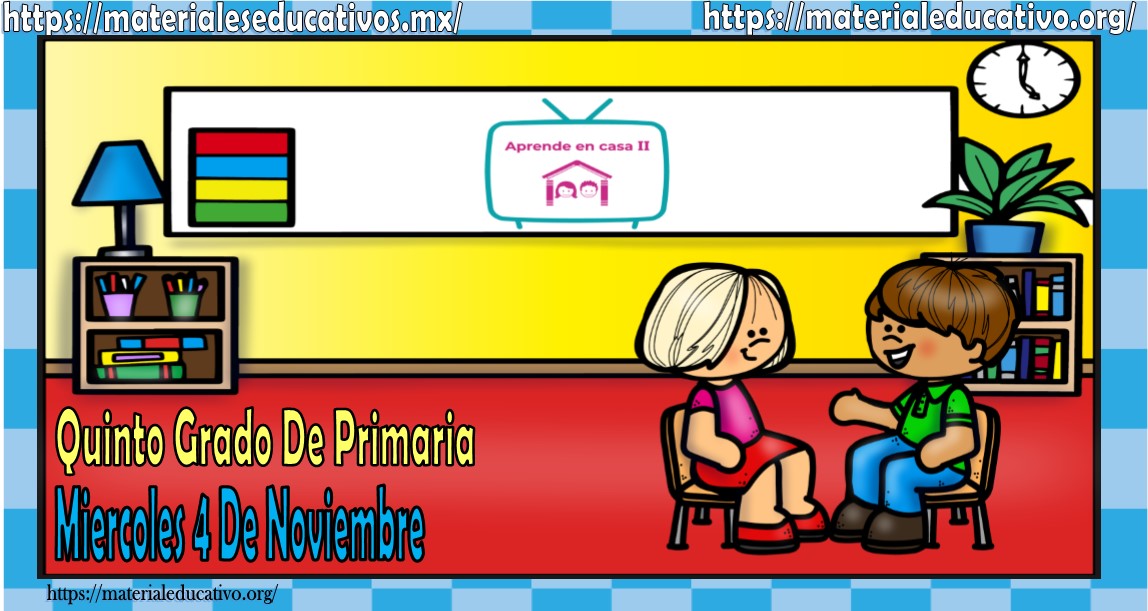 Amigos, compañeros docentes, padres de familia y alumnos que nos visitan, como ya es costumbre nosotros les proporcionaremos las clases contempladas para observarse en la TV del programa aprende en casa II, lo que antes se conocía como videos y preguntas. En esta oportunidad les queremos proporcionar las clases del quinto grado de primaria del miércoles 4 de noviembre del 2020 del presente ciclo escolar 2020 – 2021, estaremos seguros que con este material podrá facilitar la realización de las actividades planteadas por parte del programa. Muchas gracias por visitarnos y recuerden que aquí podrán encontrar las preguntas, videos y todas las clases del programa de aprende en casa 2. Recuerden compartir nuestros enlaces en sus redes sociales y etiquetar a sus compañeros y amigos docentes en nuestras publicaciones.