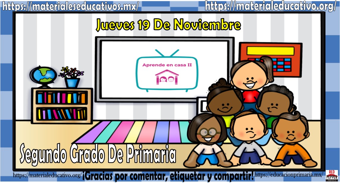 Amigos, compañeros docentes, padres de familia y alumnos que nos visitan, como ya es costumbre nosotros les proporcionaremos las clases contempladas para observarse en la TV del programa aprende en casa II, lo que antes se conocía como videos y preguntas. En esta oportunidad les queremos proporcionar las clases del segundo grado de primaria del jueves 19 de noviembre del 2020 del presente ciclo escolar 2020 – 2021, estaremos seguros que con este material podrá facilitar la realización de las actividades planteadas por parte del programa. Muchas gracias por visitarnos y recuerden que aquí podrán encontrar las preguntas, videos y todas las clases del programa de aprende en casa 2. Recuerden compartir nuestros enlaces en sus redes sociales y etiquetar a sus compañeros y amigos docentes en nuestras publicaciones.