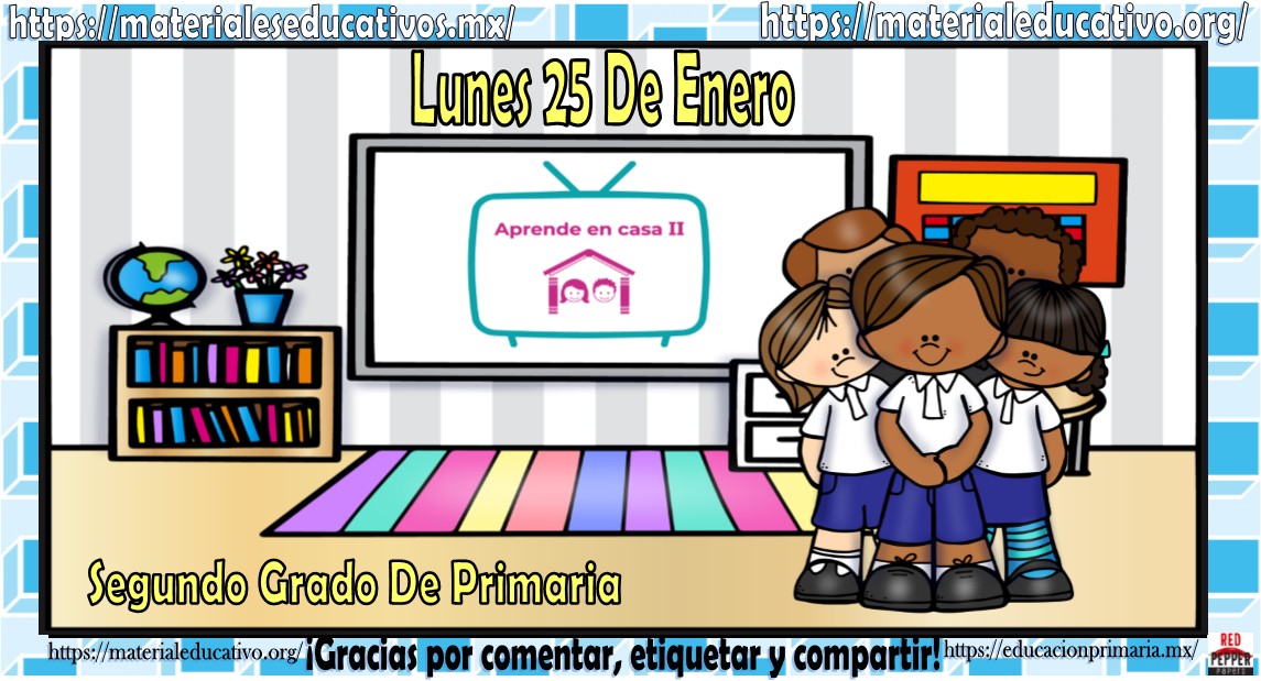 Amigos, compañeros docentes, padres de familia y alumnos que nos visitan, como ya es costumbre nosotros les proporcionaremos las clases contempladas para observarse en la TV del programa aprende en casa II, lo que antes se conocía como videos y preguntas. En esta oportunidad les queremos proporcionar las clases del segundo grado de primaria del lunes 25 de enero del 2021 del presente ciclo escolar 2020 – 2021, estaremos seguros que con este material podrá facilitar la realización de las actividades planteadas por parte del programa. Muchas gracias por visitarnos y recuerden que aquí podrán encontrar las preguntas, videos y todas las clases del programa de aprende en casa 2. Recuerden compartir nuestros enlaces en sus redes sociales y etiquetar a sus compañeros y amigos docentes en nuestras publicaciones.
