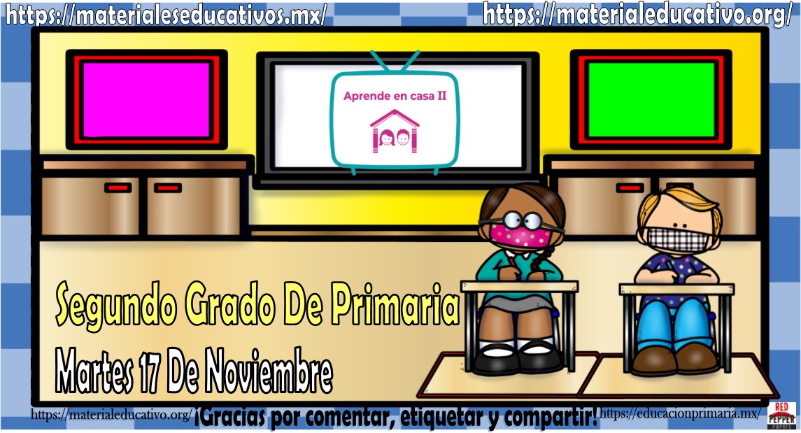 Amigos, compañeros docentes, padres de familia y alumnos que nos visitan, como ya es costumbre nosotros les proporcionaremos las clases contempladas para observarse en la TV del programa aprende en casa II, lo que antes se conocía como videos y preguntas. En esta oportunidad les queremos proporcionar las clases del segundo grado de primaria del martes 17 de noviembre del 2020 del presente ciclo escolar 2020 – 2021, estaremos seguros que con este material podrá facilitar la realización de las actividades planteadas por parte del programa. Muchas gracias por visitarnos y recuerden que aquí podrán encontrar las preguntas, videos y todas las clases del programa de aprende en casa 2. Recuerden compartir nuestros enlaces en sus redes sociales y etiquetar a sus compañeros y amigos docentes en nuestras publicaciones.