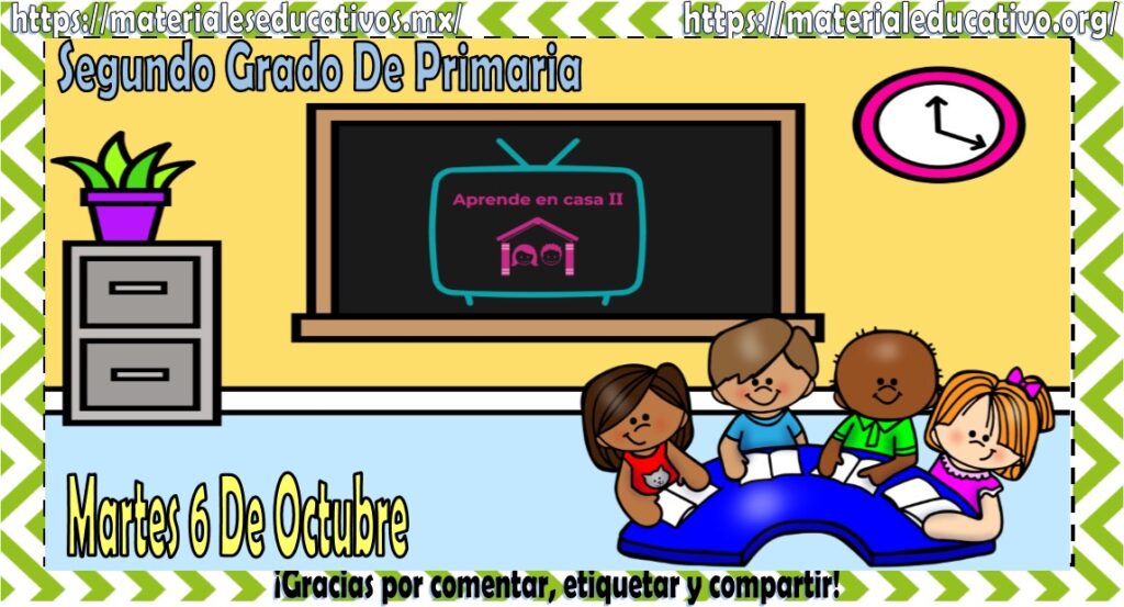 Amigos, compañeros docentes, padres de familia y alumnos que nos visitan, como ya es costumbre nosotros les proporcionaremos las clases contempladas para observarse en la TV del programa aprende en casa II, lo que antes se conocía como videos y preguntas. En esta oportunidad les queremos proporcionar las clases del segundo grado de primaria del martes 6 de octubre del 2020 del presente ciclo escolar 2020 – 2021, estaremos seguros que con este material podrá facilitar la realización de las actividades planteadas por parte del programa. Muchas gracias por visitarnos y recuerden que aquí podrán encontrar las preguntas, videos y todas las clases del programa de aprende en casa 2. Recuerden compartir nuestros enlaces en sus redes sociales y etiquetar a sus compañeros y amigos docentes en nuestras publicaciones.