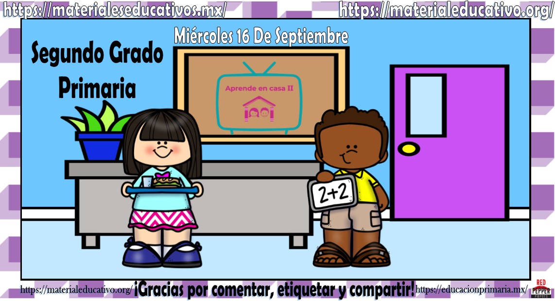 Amigos, compañeros docentes, padres de familia y alumnos que nos visitan, como ya es costumbre nosotros les proporcionaremos las clases contempladas para observarse en la TV del programa aprende en casa II, lo que antes se conocía como videos y preguntas. En esta oportunidad les queremos proporcionar las clases del segundo grado de primaria del miércoles 16 de septiembre del 2020 del presente ciclo escolar 2020 – 2021, estaremos seguros que con este material podrá facilitar la realización de las actividades planteadas por parte del programa. Muchas gracias por visitarnos y recuerden que aquí podrán encontrar las preguntas, videos y todas las clases del programa de aprende en casa 2. Recuerden compartir nuestros enlaces en sus redes sociales y etiquetar a sus compañeros y amigos docentes en nuestras publicaciones.
