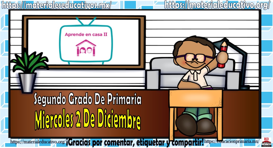 Amigos, compañeros docentes, padres de familia y alumnos que nos visitan, como ya es costumbre nosotros les proporcionaremos las clases contempladas para observarse en la TV del programa aprende en casa II, lo que antes se conocía como videos y preguntas. En esta oportunidad les queremos proporcionar las clases del segundo grado de primaria del miércoles 2 de diciembre del 2020 del presente ciclo escolar 2020 – 2021, estaremos seguros que con este material podrá facilitar la realización de las actividades planteadas por parte del programa. Muchas gracias por visitarnos y recuerden que aquí podrán encontrar las preguntas, videos y todas las clases del programa de aprende en casa 2. Recuerden compartir nuestros enlaces en sus redes sociales y etiquetar a sus compañeros y amigos docentes en nuestras publicaciones.