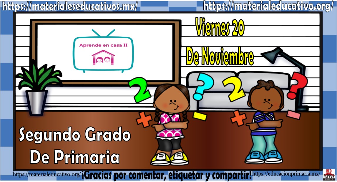 Amigos, compañeros docentes, padres de familia y alumnos que nos visitan, como ya es costumbre nosotros les proporcionaremos las clases contempladas para observarse en la TV del programa aprende en casa II, lo que antes se conocía como videos y preguntas. En esta oportunidad les queremos proporcionar las clases del segundo grado de primaria del viernes 20 de noviembre del 2020 del presente ciclo escolar 2020 – 2021, estaremos seguros que con este material podrá facilitar la realización de las actividades planteadas por parte del programa. Muchas gracias por visitarnos y recuerden que aquí podrán encontrar las preguntas, videos y todas las clases del programa de aprende en casa 2. Recuerden compartir nuestros enlaces en sus redes sociales y etiquetar a sus compañeros y amigos docentes en nuestras publicaciones.