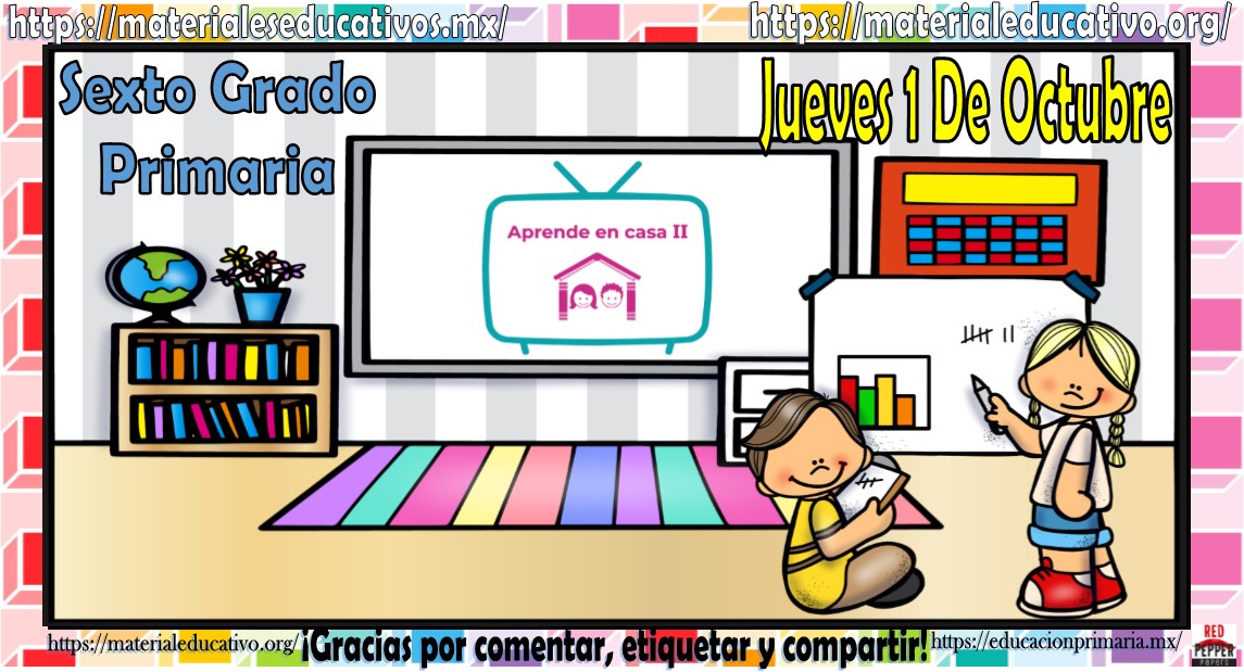 Amigos, compañeros docentes, padres de familia y alumnos que nos visitan, como ya es costumbre nosotros les proporcionaremos las clases contempladas para observarse en la TV del programa aprende en casa II, lo que antes se conocía como videos y preguntas. En esta oportunidad les queremos proporcionar las clases del sexto grado de primaria del jueves 1 de octubre del 2020 del presente ciclo escolar 2020 – 2021, estaremos seguros que con este material podrá facilitar la realización de las actividades planteadas por parte del programa. Muchas gracias por visitarnos y recuerden que aquí podrán encontrar las preguntas, videos y todas las clases del programa de aprende en casa 2. Recuerden compartir nuestros enlaces en sus redes sociales y etiquetar a sus compañeros y amigos docentes en nuestras publicaciones.