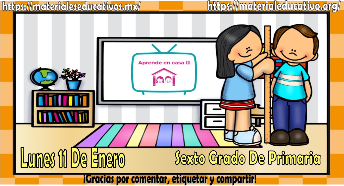 Amigos, compañeros docentes, padres de familia y alumnos que nos visitan, como ya es costumbre nosotros les proporcionaremos las clases contempladas para observarse en la TV del programa aprende en casa II, lo que antes se conocía como videos y preguntas. En esta oportunidad les queremos proporcionar las clases del sexto grado de primaria del lunes 11 de enero del 2021 del presente ciclo escolar 2020 – 2021, estaremos seguros que con este material podrá facilitar la realización de las actividades planteadas por parte del programa. Muchas gracias por visitarnos y recuerden que aquí podrán encontrar las preguntas, videos y todas las clases del programa de aprende en casa 2. Recuerden compartir nuestros enlaces en sus redes sociales y etiquetar a sus compañeros y amigos docentes en nuestras publicaciones.