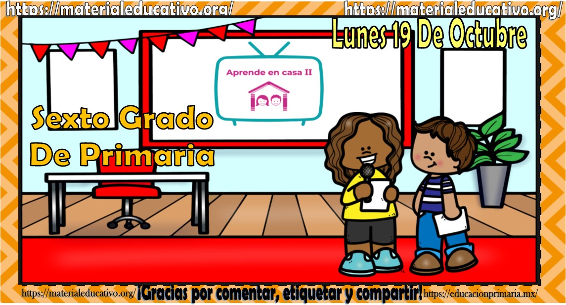 Amigos, compañeros docentes, padres de familia y alumnos que nos visitan, como ya es costumbre nosotros les proporcionaremos las clases contempladas para observarse en la TV del programa aprende en casa II, lo que antes se conocía como videos y preguntas. En esta oportunidad les queremos proporcionar las clases del sexto grado de primaria del lunes 19 de octubre del 2020 del presente ciclo escolar 2020 – 2021, estaremos seguros que con este material podrá facilitar la realización de las actividades planteadas por parte del programa. Muchas gracias por visitarnos y recuerden que aquí podrán encontrar las preguntas, videos y todas las clases del programa de aprende en casa 2. Recuerden compartir nuestros enlaces en sus redes sociales y etiquetar a sus compañeros y amigos docentes en nuestras publicaciones.