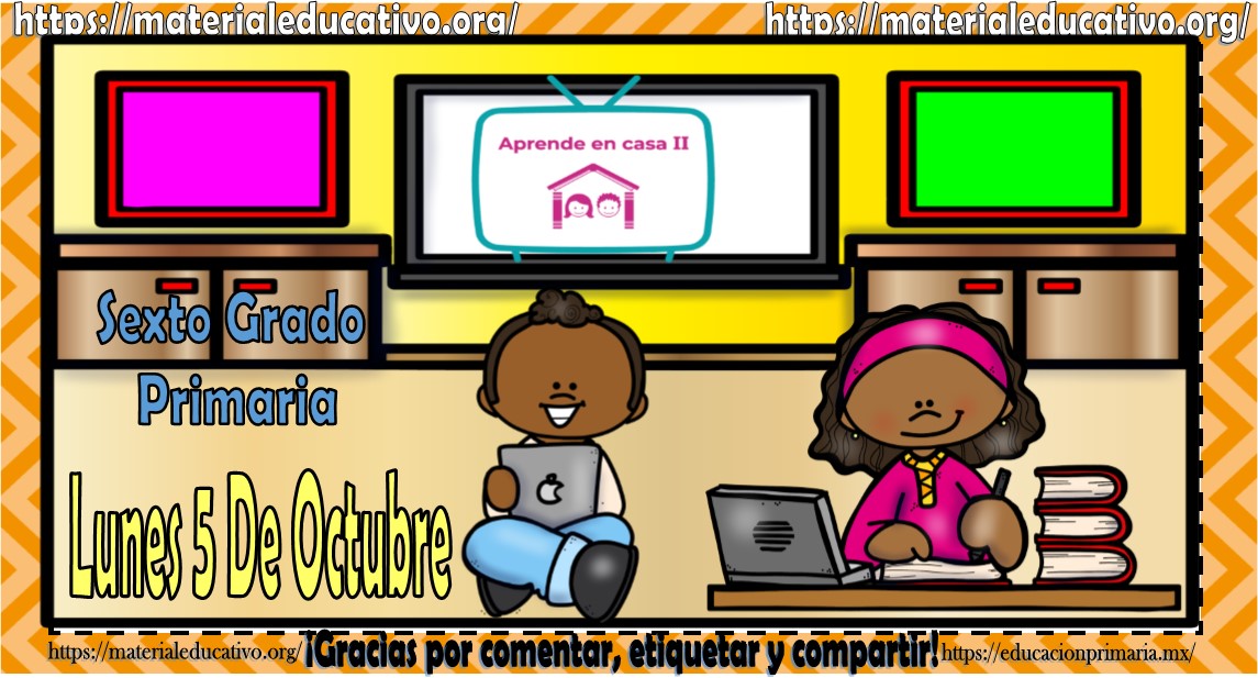 Amigos, compañeros docentes, padres de familia y alumnos que nos visitan, como ya es costumbre nosotros les proporcionaremos las clases contempladas para observarse en la TV del programa aprende en casa II, lo que antes se conocía como videos y preguntas. En esta oportunidad les queremos proporcionar las clases del sexto grado de primaria del lunes 5 de octubre del 2020 del presente ciclo escolar 2020 – 2021, estaremos seguros que con este material podrá facilitar la realización de las actividades planteadas por parte del programa. Muchas gracias por visitarnos y recuerden que aquí podrán encontrar las preguntas, videos y todas las clases del programa de aprende en casa 2. Recuerden compartir nuestros enlaces en sus redes sociales y etiquetar a sus compañeros y amigos docentes en nuestras publicaciones.