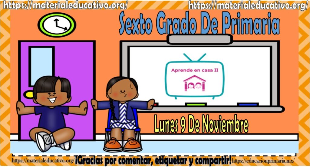 Amigos, compañeros docentes, padres de familia y alumnos que nos visitan, como ya es costumbre nosotros les proporcionaremos las clases contempladas para observarse en la TV del programa aprende en casa II, lo que antes se conocía como videos y preguntas. En esta oportunidad les queremos proporcionar las clases del sexto grado de primaria del lunes 9 de noviembre del 2020 del presente ciclo escolar 2020 – 2021, estaremos seguros que con este material podrá facilitar la realización de las actividades planteadas por parte del programa. Muchas gracias por visitarnos y recuerden que aquí podrán encontrar las preguntas, videos y todas las clases del programa de aprende en casa 2. Recuerden compartir nuestros enlaces en sus redes sociales y etiquetar a sus compañeros y amigos docentes en nuestras publicaciones.