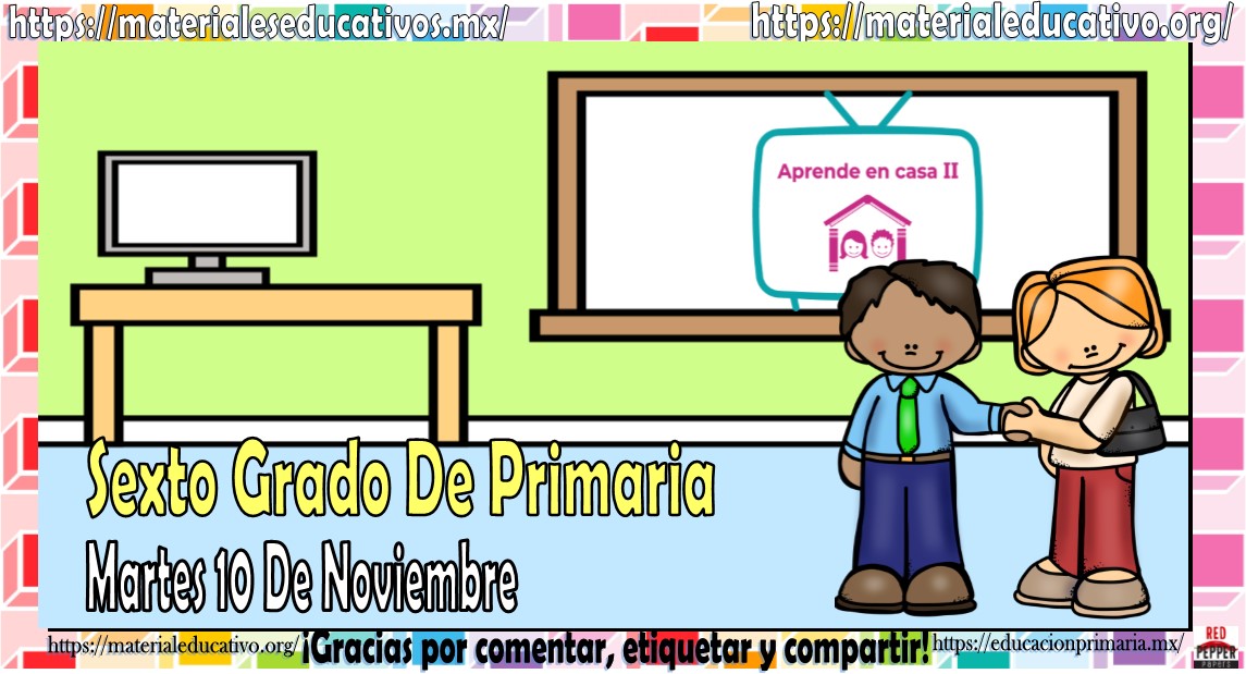 Amigos, compañeros docentes, padres de familia y alumnos que nos visitan, como ya es costumbre nosotros les proporcionaremos las clases contempladas para observarse en la TV del programa aprende en casa II, lo que antes se conocía como videos y preguntas. En esta oportunidad les queremos proporcionar las clases del sexto grado de primaria del martes 10 de noviembre del 2020 del presente ciclo escolar 2020 – 2021, estaremos seguros que con este material podrá facilitar la realización de las actividades planteadas por parte del programa. Muchas gracias por visitarnos y recuerden que aquí podrán encontrar las preguntas, videos y todas las clases del programa de aprende en casa 2. Recuerden compartir nuestros enlaces en sus redes sociales y etiquetar a sus compañeros y amigos docentes en nuestras publicaciones.