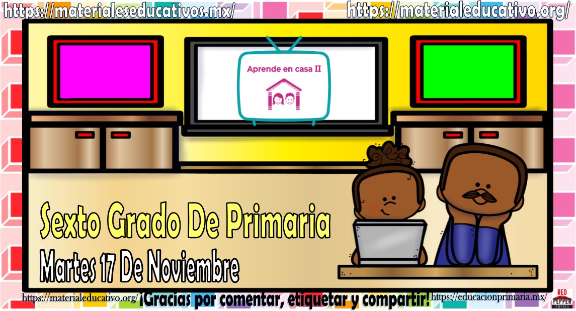 Amigos, compañeros docentes, padres de familia y alumnos que nos visitan, como ya es costumbre nosotros les proporcionaremos las clases contempladas para observarse en la TV del programa aprende en casa II, lo que antes se conocía como videos y preguntas. En esta oportunidad les queremos proporcionar las clases del sexto grado de primaria del martes 17 de noviembre del 2020 del presente ciclo escolar 2020 – 2021, estaremos seguros que con este material podrá facilitar la realización de las actividades planteadas por parte del programa. Muchas gracias por visitarnos y recuerden que aquí podrán encontrar las preguntas, videos y todas las clases del programa de aprende en casa 2. Recuerden compartir nuestros enlaces en sus redes sociales y etiquetar a sus compañeros y amigos docentes en nuestras publicaciones.