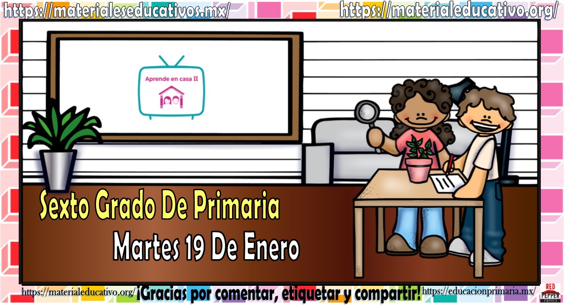 Amigos, compañeros docentes, padres de familia y alumnos que nos visitan, como ya es costumbre nosotros les proporcionaremos las clases contempladas para observarse en la TV del programa aprende en casa II, lo que antes se conocía como videos y preguntas. En esta oportunidad les queremos proporcionar las clases del sexto grado de primaria del martes 19 de enero del 2021 del presente ciclo escolar 2020 – 2021, estaremos seguros que con este material podrá facilitar la realización de las actividades planteadas por parte del programa. Muchas gracias por visitarnos y recuerden que aquí podrán encontrar las preguntas, videos y todas las clases del programa de aprende en casa 2. Recuerden compartir nuestros enlaces en sus redes sociales y etiquetar a sus compañeros y amigos docentes en nuestras publicaciones.