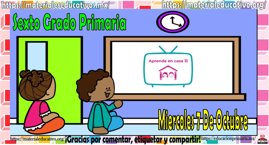 Amigos, compañeros docentes, padres de familia y alumnos que nos visitan, como ya es costumbre nosotros les proporcionaremos las clases contempladas para observarse en la TV del programa aprende en casa II, lo que antes se conocía como videos y preguntas. En esta oportunidad les queremos proporcionar las clases del sexto grado de primaria del miércoles 7 de octubre del 2020 del presente ciclo escolar 2020 – 2021, estaremos seguros que con este material podrá facilitar la realización de las actividades planteadas por parte del programa. Muchas gracias por visitarnos y recuerden que aquí podrán encontrar las preguntas, videos y todas las clases del programa de aprende en casa 2. Recuerden compartir nuestros enlaces en sus redes sociales y etiquetar a sus compañeros y amigos docentes en nuestras publicaciones.