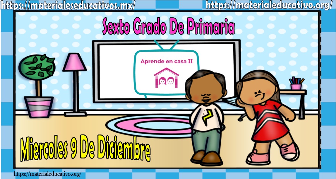 Amigos, compañeros docentes, padres de familia y alumnos que nos visitan, como ya es costumbre nosotros les proporcionaremos las clases contempladas para observarse en la TV del programa aprende en casa II, lo que antes se conocía como videos y preguntas. En esta oportunidad les queremos proporcionar las clases del sexto grado de primaria del miércoles 9 de diciembre del 2020 del presente ciclo escolar 2020 – 2021, estaremos seguros que con este material podrá facilitar la realización de las actividades planteadas por parte del programa. Muchas gracias por visitarnos y recuerden que aquí podrán encontrar las preguntas, videos y todas las clases del programa de aprende en casa 2. Recuerden compartir nuestros enlaces en sus redes sociales y etiquetar a sus compañeros y amigos docentes en nuestras publicaciones.