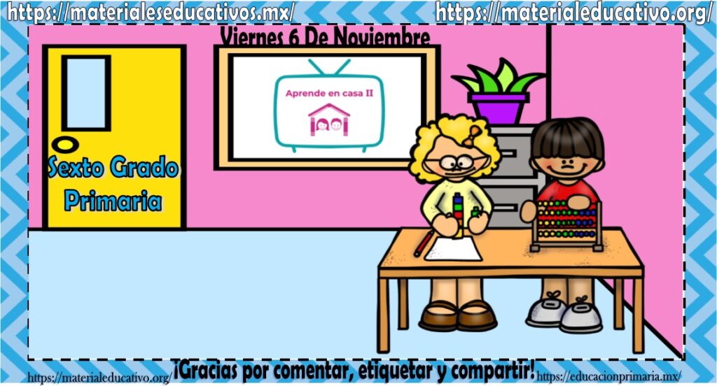 Amigos, compañeros docentes, padres de familia y alumnos que nos visitan, como ya es costumbre nosotros les proporcionaremos las clases contempladas para observarse en la TV del programa aprende en casa II, lo que antes se conocía como videos y preguntas. En esta oportunidad les queremos proporcionar las clases del sexto grado de primaria del viernes 6 de noviembre del 2020 del presente ciclo escolar 2020 – 2021, estaremos seguros que con este material podrá facilitar la realización de las actividades planteadas por parte del programa. Muchas gracias por visitarnos y recuerden que aquí podrán encontrar las preguntas, videos y todas las clases del programa de aprende en casa 2. Recuerden compartir nuestros enlaces en sus redes sociales y etiquetar a sus compañeros y amigos docentes en nuestras publicaciones.