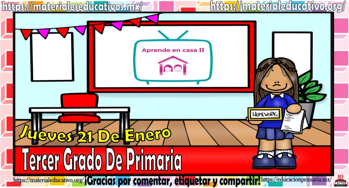 Amigos, compañeros docentes, padres de familia y alumnos que nos visitan, como ya es costumbre nosotros les proporcionaremos las clases contempladas para observarse en la TV del programa aprende en casa II, lo que antes se conocía como videos y preguntas. En esta oportunidad les queremos proporcionar las clases del tercer grado de primaria del jueves 21 de enero del 2021 del presente ciclo escolar 2020 – 2021, estaremos seguros que con este material podrá facilitar la realización de las actividades planteadas por parte del programa. Muchas gracias por visitarnos y recuerden que aquí podrán encontrar las preguntas, videos y todas las clases del programa de aprende en casa 2. Recuerden compartir nuestros enlaces en sus redes sociales y etiquetar a sus compañeros y amigos docentes en nuestras publicaciones.