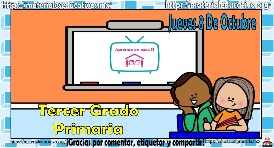Amigos, compañeros docentes, padres de familia y alumnos que nos visitan, como ya es costumbre nosotros les proporcionaremos las clases contempladas para observarse en la TV del programa aprende en casa II, lo que antes se conocía como videos y preguntas. En esta oportunidad les queremos proporcionar las clases del tercer grado de primaria del jueves 8 de octubre del 2020 del presente ciclo escolar 2020 – 2021, estaremos seguros que con este material podrá facilitar la realización de las actividades planteadas por parte del programa. Muchas gracias por visitarnos y recuerden que aquí podrán encontrar las preguntas, videos y todas las clases del programa de aprende en casa 2. Recuerden compartir nuestros enlaces en sus redes sociales y etiquetar a sus compañeros y amigos docentes en nuestras publicaciones.