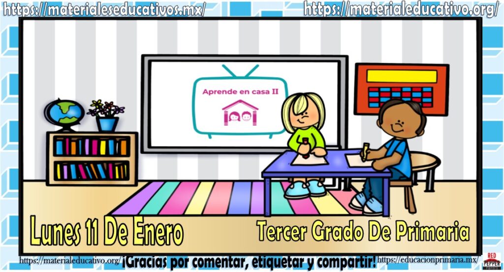 Amigos, compañeros docentes, padres de familia y alumnos que nos visitan, como ya es costumbre nosotros les proporcionaremos las clases contempladas para observarse en la TV del programa aprende en casa II, lo que antes se conocía como videos y preguntas. En esta oportunidad les queremos proporcionar las clases del tercer grado de primaria del lunes 11 de enero del 2021 del presente ciclo escolar 2020 – 2021, estaremos seguros que con este material podrá facilitar la realización de las actividades planteadas por parte del programa. Muchas gracias por visitarnos y recuerden que aquí podrán encontrar las preguntas, videos y todas las clases del programa de aprende en casa 2. Recuerden compartir nuestros enlaces en sus redes sociales y etiquetar a sus compañeros y amigos docentes en nuestras publicaciones.