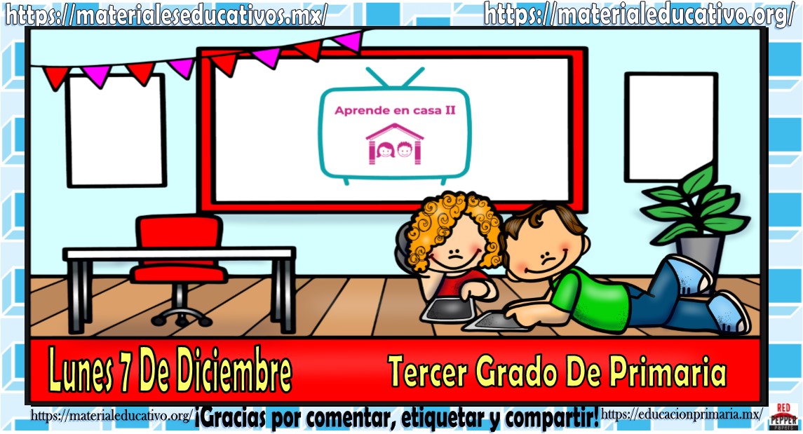 Amigos, compañeros docentes, padres de familia y alumnos que nos visitan, como ya es costumbre nosotros les proporcionaremos las clases contempladas para observarse en la TV del programa aprende en casa II, lo que antes se conocía como videos y preguntas. En esta oportunidad les queremos proporcionar las clases del tercer grado de primaria del lunes 7 de diciembre del 2020 del presente ciclo escolar 2020 – 2021, estaremos seguros que con este material podrá facilitar la realización de las actividades planteadas por parte del programa. Muchas gracias por visitarnos y recuerden que aquí podrán encontrar las preguntas, videos y todas las clases del programa de aprende en casa 2. Recuerden compartir nuestros enlaces en sus redes sociales y etiquetar a sus compañeros y amigos docentes en nuestras publicaciones.