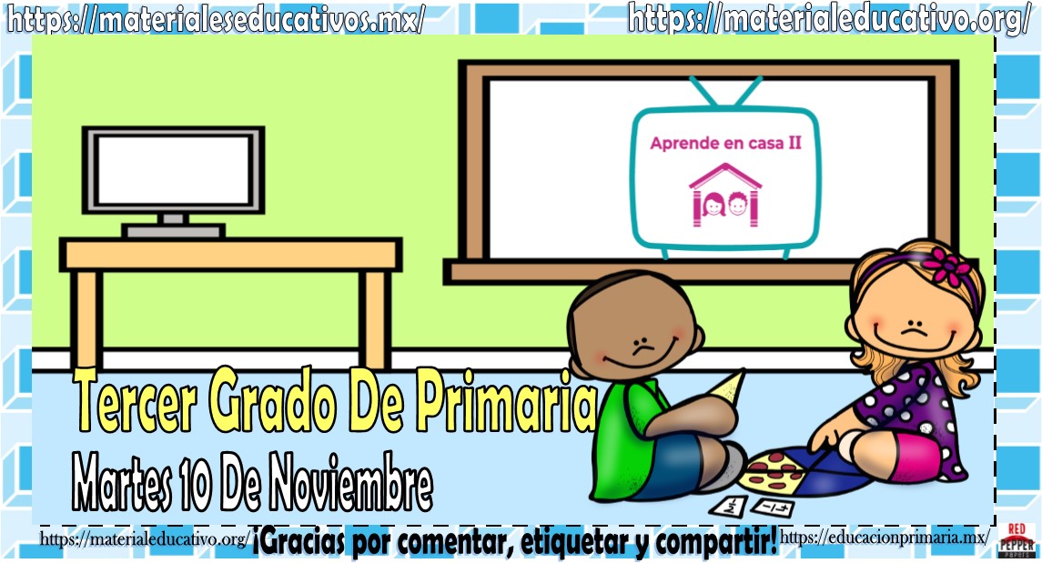 Amigos, compañeros docentes, padres de familia y alumnos que nos visitan, como ya es costumbre nosotros les proporcionaremos las clases contempladas para observarse en la TV del programa aprende en casa II, lo que antes se conocía como videos y preguntas. En esta oportunidad les queremos proporcionar las clases del tercer grado de primaria del martes 10 de noviembre del 2020 del presente ciclo escolar 2020 – 2021, estaremos seguros que con este material podrá facilitar la realización de las actividades planteadas por parte del programa. Muchas gracias por visitarnos y recuerden que aquí podrán encontrar las preguntas, videos y todas las clases del programa de aprende en casa 2. Recuerden compartir nuestros enlaces en sus redes sociales y etiquetar a sus compañeros y amigos docentes en nuestras publicaciones.