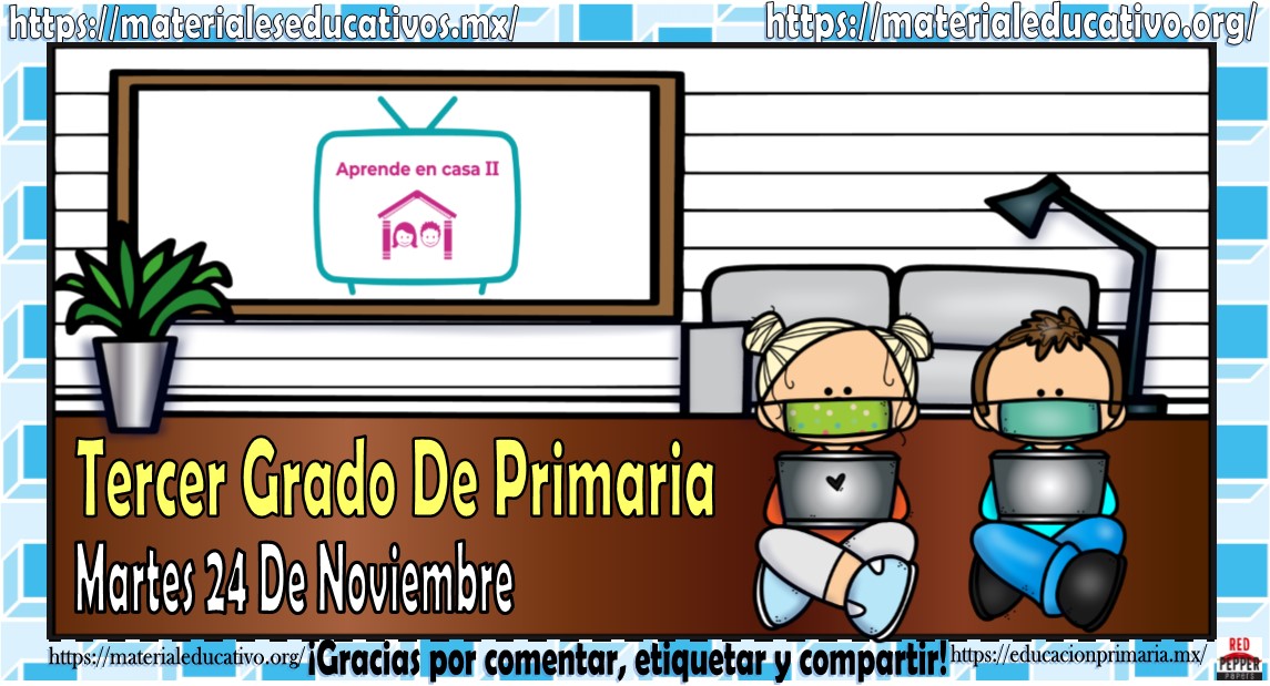 Amigos, compañeros docentes, padres de familia y alumnos que nos visitan, como ya es costumbre nosotros les proporcionaremos las clases contempladas para observarse en la TV del programa aprende en casa II, lo que antes se conocía como videos y preguntas. En esta oportunidad les queremos proporcionar las clases del tercer grado de primaria del martes 24 de noviembre del 2020 del presente ciclo escolar 2020 – 2021, estaremos seguros que con este material podrá facilitar la realización de las actividades planteadas por parte del programa. Muchas gracias por visitarnos y recuerden que aquí podrán encontrar las preguntas, videos y todas las clases del programa de aprende en casa 2. Recuerden compartir nuestros enlaces en sus redes sociales y etiquetar a sus compañeros y amigos docentes en nuestras publicaciones.