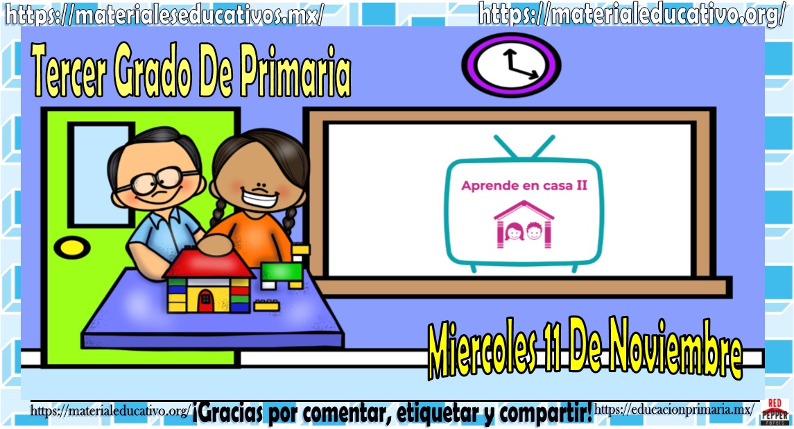 Amigos, compañeros docentes, padres de familia y alumnos que nos visitan, como ya es costumbre nosotros les proporcionaremos las clases contempladas para observarse en la TV del programa aprende en casa II, lo que antes se conocía como videos y preguntas. En esta oportunidad les queremos proporcionar las clases del tercer grado de primaria del miércoles 11 de noviembre del 2020 del presente ciclo escolar 2020 – 2021, estaremos seguros que con este material podrá facilitar la realización de las actividades planteadas por parte del programa. Muchas gracias por visitarnos y recuerden que aquí podrán encontrar las preguntas, videos y todas las clases del programa de aprende en casa 2. Recuerden compartir nuestros enlaces en sus redes sociales y etiquetar a sus compañeros y amigos docentes en nuestras publicaciones.