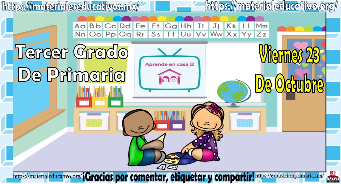 Amigos, compañeros docentes, padres de familia y alumnos que nos visitan, como ya es costumbre nosotros les proporcionaremos las clases contempladas para observarse en la TV del programa aprende en casa II, lo que antes se conocía como videos y preguntas. En esta oportunidad les queremos proporcionar las clases del tercer grado de primaria del viernes 23 de octubre del 2020 del presente ciclo escolar 2020 – 2021, estaremos seguros que con este material podrá facilitar la realización de las actividades planteadas por parte del programa. Muchas gracias por visitarnos y recuerden que aquí podrán encontrar las preguntas, videos y todas las clases del programa de aprende en casa 2. Recuerden compartir nuestros enlaces en sus redes sociales y etiquetar a sus compañeros y amigos docentes en nuestras publicaciones.