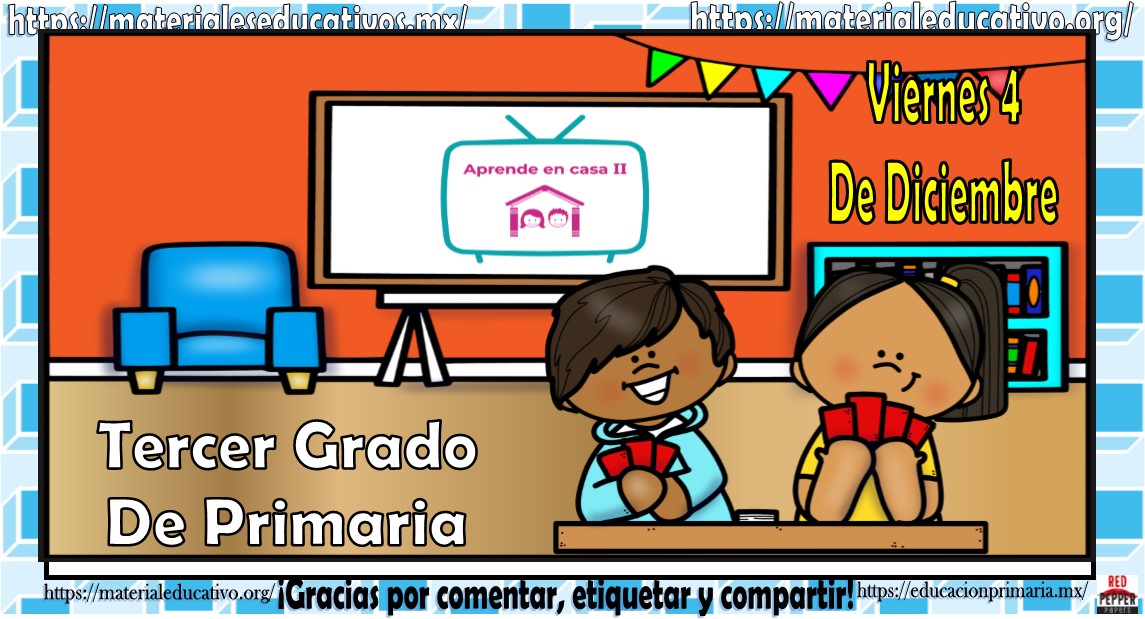 Amigos, compañeros docentes, padres de familia y alumnos que nos visitan, como ya es costumbre nosotros les proporcionaremos las clases contempladas para observarse en la TV del programa aprende en casa II, lo que antes se conocía como videos y preguntas. En esta oportunidad les queremos proporcionar las clases del tercer grado de primaria del viernes 4 de diciembre del 2020 del presente ciclo escolar 2020 – 2021, estaremos seguros que con este material podrá facilitar la realización de las actividades planteadas por parte del programa. Muchas gracias por visitarnos y recuerden que aquí podrán encontrar las preguntas, videos y todas las clases del programa de aprende en casa 2. Recuerden compartir nuestros enlaces en sus redes sociales y etiquetar a sus compañeros y amigos docentes en nuestras publicaciones.