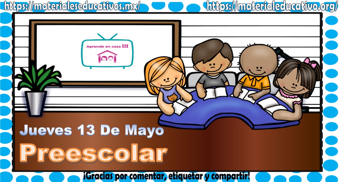 Amigos, compañeros docentes, padres de familia y alumnos que nos visitan, como ya es costumbre nosotros les proporcionaremos las clases contempladas para observarse en la TV del programa aprende en casa II, lo que antes se conocía como videos y preguntas. En esta oportunidad les queremos proporcionar las Mis clases de aprende en casa III de preescolar del jueves 13 de mayo del 2021, estaremos seguros que con este material podrá facilitar la realización de las actividades planteadas por parte del programa. Muchas gracias por visitarnos y recuerden que aquí podrán encontrar las preguntas, videos y todas las clases del programa de aprende en casa 2. Recuerden compartir nuestros enlaces en sus redes sociales y etiquetar a sus compañeros y amigos docentes en nuestras publicaciones.