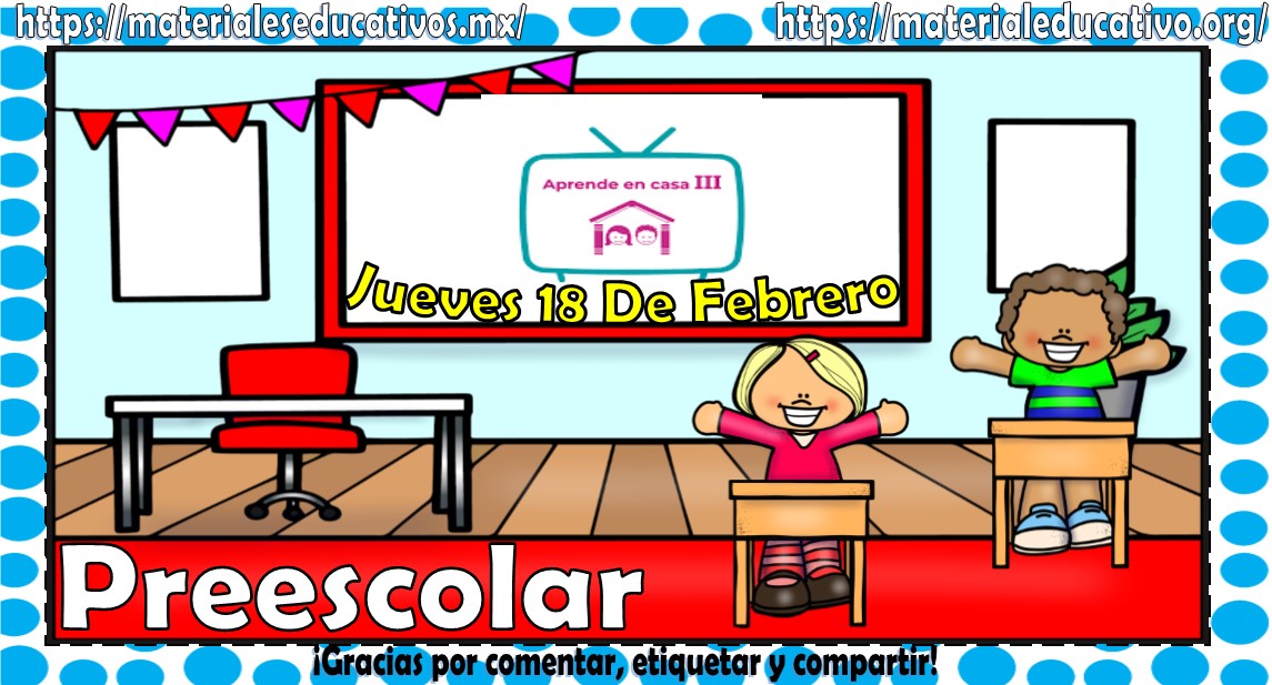 Amigos, compañeros docentes, padres de familia y alumnos que nos visitan, como ya es costumbre nosotros les proporcionaremos las clases contempladas para observarse en la TV del programa aprende en casa II, lo que antes se conocía como videos y preguntas. En esta oportunidad les queremos proporcionar las Mis clases de aprende en casa III de preescolar del jueves 18 de febrero del 2021, estaremos seguros que con este material podrá facilitar la realización de las actividades planteadas por parte del programa. Muchas gracias por visitarnos y recuerden que aquí podrán encontrar las preguntas, videos y todas las clases del programa de aprende en casa 2. Recuerden compartir nuestros enlaces en sus redes sociales y etiquetar a sus compañeros y amigos docentes en nuestras publicaciones.