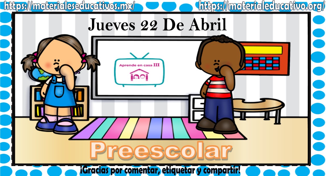 Amigos, compañeros docentes, padres de familia y alumnos que nos visitan, como ya es costumbre nosotros les proporcionaremos las clases contempladas para observarse en la TV del programa aprende en casa II, lo que antes se conocía como videos y preguntas. En esta oportunidad les queremos proporcionar las Mis clases de aprende en casa III de preescolar del jueves 22 de abril del 2021, estaremos seguros que con este material podrá facilitar la realización de las actividades planteadas por parte del programa. Muchas gracias por visitarnos y recuerden que aquí podrán encontrar las preguntas, videos y todas las clases del programa de aprende en casa 2. Recuerden compartir nuestros enlaces en sus redes sociales y etiquetar a sus compañeros y amigos docentes en nuestras publicaciones.