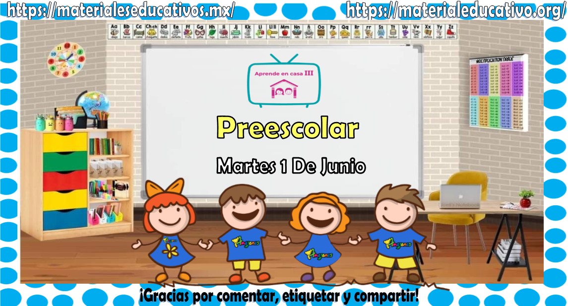 Amigos, compañeros docentes, padres de familia y alumnos que nos visitan, como ya es costumbre nosotros les proporcionaremos las clases contempladas para observarse en la TV del programa aprende en casa II, lo que antes se conocía como videos y preguntas. En esta oportunidad les queremos proporcionar las Mis clases de aprende en casa III de preescolar del martes 1 de junio del 2021, estaremos seguros que con este material podrá facilitar la realización de las actividades planteadas por parte del programa. Muchas gracias por visitarnos y recuerden que aquí podrán encontrar las preguntas, videos y todas las clases del programa de aprende en casa 2. Recuerden compartir nuestros enlaces en sus redes sociales y etiquetar a sus compañeros y amigos docentes en nuestras publicaciones.