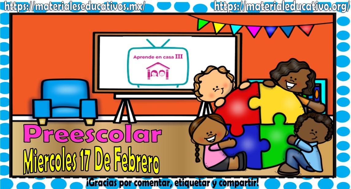 Amigos, compañeros docentes, padres de familia y alumnos que nos visitan, como ya es costumbre nosotros les proporcionaremos las clases contempladas para observarse en la TV del programa aprende en casa II, lo que antes se conocía como videos y preguntas. En esta oportunidad les queremos proporcionar las Mis clases de aprende en casa III de preescolar del miércoles 17 de febrero del 2021, estaremos seguros que con este material podrá facilitar la realización de las actividades planteadas por parte del programa. Muchas gracias por visitarnos y recuerden que aquí podrán encontrar las preguntas, videos y todas las clases del programa de aprende en casa 2. Recuerden compartir nuestros enlaces en sus redes sociales y etiquetar a sus compañeros y amigos docentes en nuestras publicaciones.
