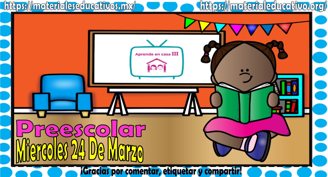 Amigos, compañeros docentes, padres de familia y alumnos que nos visitan, como ya es costumbre nosotros les proporcionaremos las clases contempladas para observarse en la TV del programa aprende en casa II, lo que antes se conocía como videos y preguntas. En esta oportunidad les queremos proporcionar las Mis clases de aprende en casa III de preescolar del miércoles 24 de marzo del 2021, estaremos seguros que con este material podrá facilitar la realización de las actividades planteadas por parte del programa. Muchas gracias por visitarnos y recuerden que aquí podrán encontrar las preguntas, videos y todas las clases del programa de aprende en casa 2. Recuerden compartir nuestros enlaces en sus redes sociales y etiquetar a sus compañeros y amigos docentes en nuestras publicaciones.