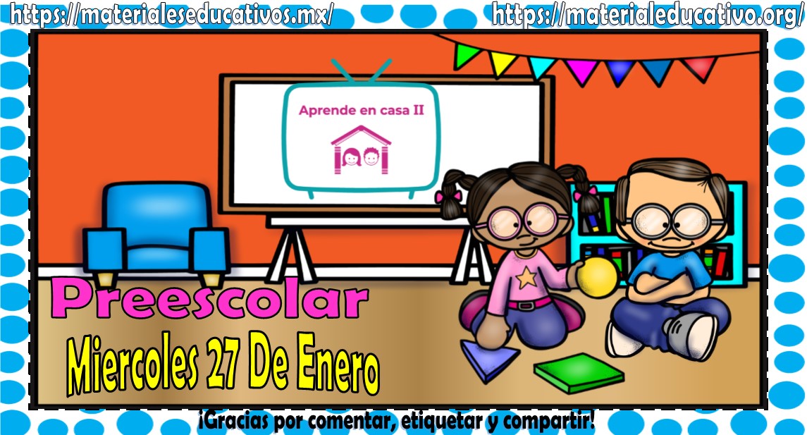 Amigos, compañeros docentes, padres de familia y alumnos que nos visitan, como ya es costumbre nosotros les proporcionaremos las clases contempladas para observarse en la TV del programa aprende en casa II, lo que antes se conocía como videos y preguntas. En esta oportunidad les queremos proporcionar las Mis clases de aprende en casa III de preescolar del miércoles 27 de enero del 2021, estaremos seguros que con este material podrá facilitar la realización de las actividades planteadas por parte del programa. Muchas gracias por visitarnos y recuerden que aquí podrán encontrar las preguntas, videos y todas las clases del programa de aprende en casa 2. Recuerden compartir nuestros enlaces en sus redes sociales y etiquetar a sus compañeros y amigos docentes en nuestras publicaciones.