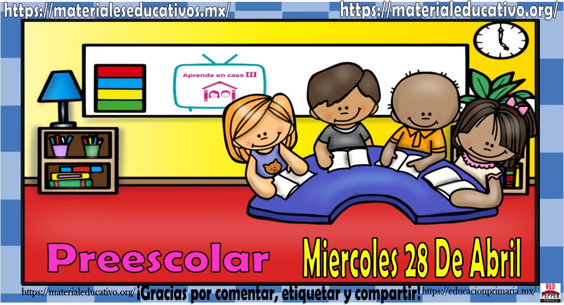 Amigos, compañeros docentes, padres de familia y alumnos que nos visitan, como ya es costumbre nosotros les proporcionaremos las clases contempladas para observarse en la TV del programa aprende en casa II, lo que antes se conocía como videos y preguntas. En esta oportunidad les queremos proporcionar las Mis clases de aprende en casa III de preescolar del miércoles 28 de abril del 2021, estaremos seguros que con este material podrá facilitar la realización de las actividades planteadas por parte del programa. Muchas gracias por visitarnos y recuerden que aquí podrán encontrar las preguntas, videos y todas las clases del programa de aprende en casa 2. Recuerden compartir nuestros enlaces en sus redes sociales y etiquetar a sus compañeros y amigos docentes en nuestras publicaciones.