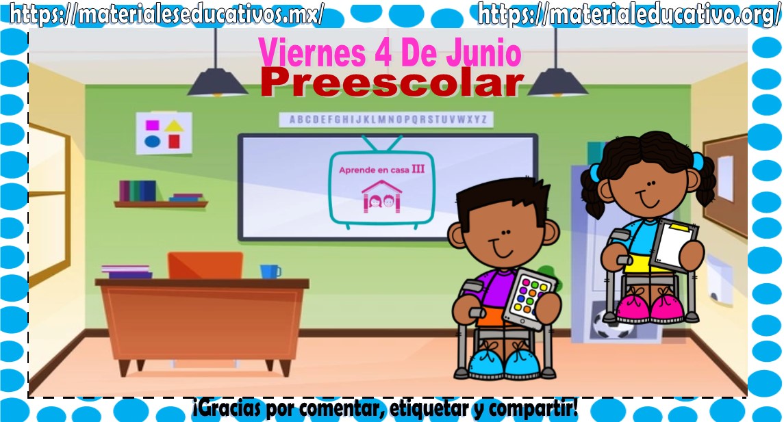 Amigos, compañeros docentes, padres de familia y alumnos que nos visitan, como ya es costumbre nosotros les proporcionaremos las clases contempladas para observarse en la TV del programa aprende en casa II, lo que antes se conocía como videos y preguntas. En esta oportunidad les queremos proporcionar las Mis clases de aprende en casa III de preescolar del viernes 4 de junio del 2021, estaremos seguros que con este material podrá facilitar la realización de las actividades planteadas por parte del programa. Muchas gracias por visitarnos y recuerden que aquí podrán encontrar las preguntas, videos y todas las clases del programa de aprende en casa 2. Recuerden compartir nuestros enlaces en sus redes sociales y etiquetar a sus compañeros y amigos docentes en nuestras publicaciones.