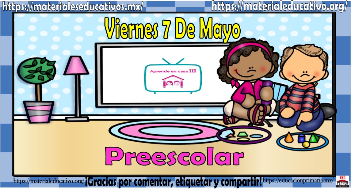 Amigos, compañeros docentes, padres de familia y alumnos que nos visitan, como ya es costumbre nosotros les proporcionaremos las clases contempladas para observarse en la TV del programa aprende en casa II, lo que antes se conocía como videos y preguntas. En esta oportunidad les queremos proporcionar las Mis clases de aprende en casa III de preescolar del viernes 7 de mayo del 2021, estaremos seguros que con este material podrá facilitar la realización de las actividades planteadas por parte del programa. Muchas gracias por visitarnos y recuerden que aquí podrán encontrar las preguntas, videos y todas las clases del programa de aprende en casa 2. Recuerden compartir nuestros enlaces en sus redes sociales y etiquetar a sus compañeros y amigos docentes en nuestras publicaciones.