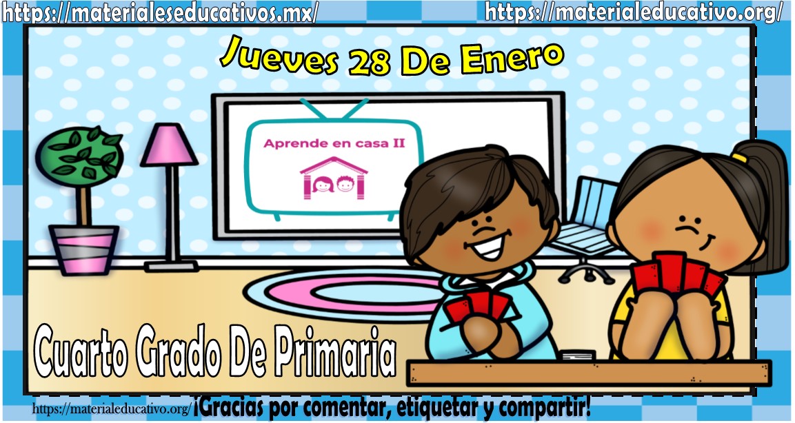 Amigos, compañeros docentes, padres de familia y alumnos que nos visitan, como ya es costumbre nosotros les proporcionaremos las clases contempladas para observarse en la TV del programa aprende en casa III, lo que antes se conocía como videos y preguntas. En esta oportunidad les queremos proporcionar las clases del cuarto grado de primaria del jueves 28 de enero del 2021 del presente ciclo escolar 2020 – 2021, estaremos seguros que con este material podrá facilitar la realización de las actividades planteadas por parte del programa. Muchas gracias por visitarnos y recuerden que aquí podrán encontrar las preguntas, videos y todas las clases del programa de aprende en casa 2. Recuerden compartir nuestros enlaces en sus redes sociales y etiquetar a sus compañeros y amigos docentes en nuestras publicaciones.
