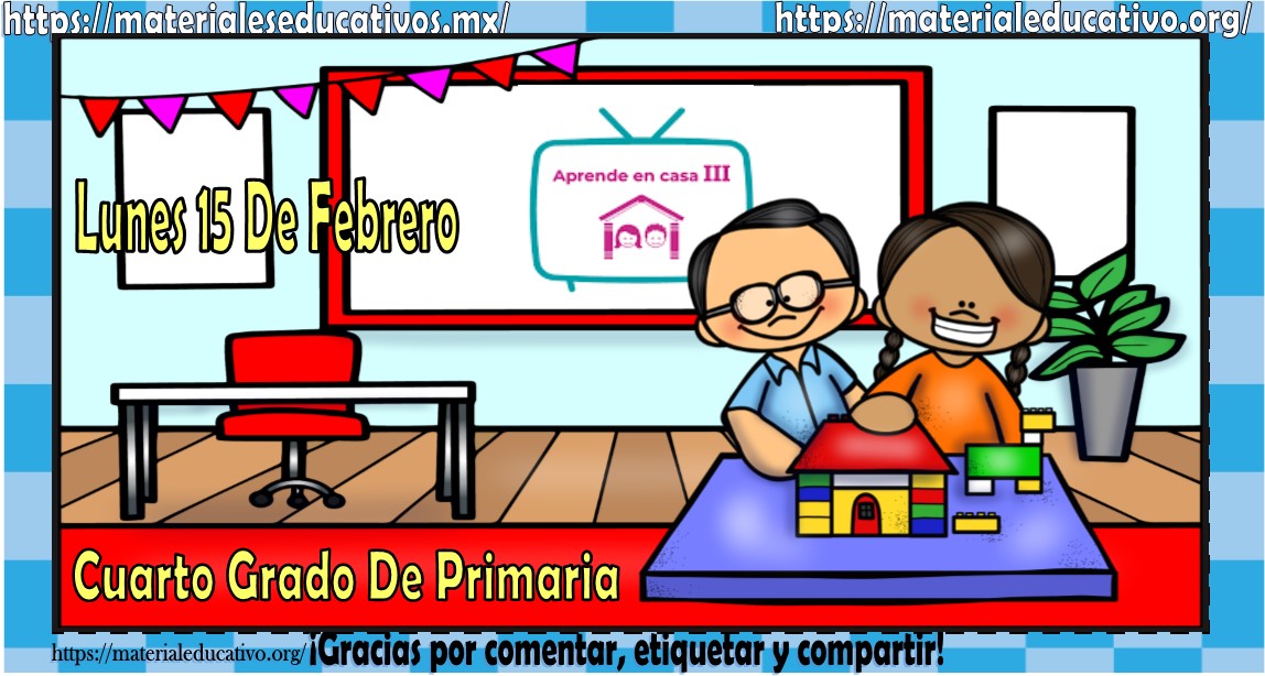 Amigos, compañeros docentes, padres de familia y alumnos que nos visitan, como ya es costumbre nosotros les proporcionaremos las clases contempladas para observarse en la TV del programa aprende en casa III, lo que antes se conocía como videos y preguntas. En esta oportunidad les queremos proporcionar las clases del cuarto grado de primaria del lunes 15 de febrero del 2021 del presente ciclo escolar 2020 – 2021, estaremos seguros que con este material podrá facilitar la realización de las actividades planteadas por parte del programa. Muchas gracias por visitarnos y recuerden que aquí podrán encontrar las preguntas, videos y todas las clases del programa de aprende en casa 2. Recuerden compartir nuestros enlaces en sus redes sociales y etiquetar a sus compañeros y amigos docentes en nuestras publicaciones.