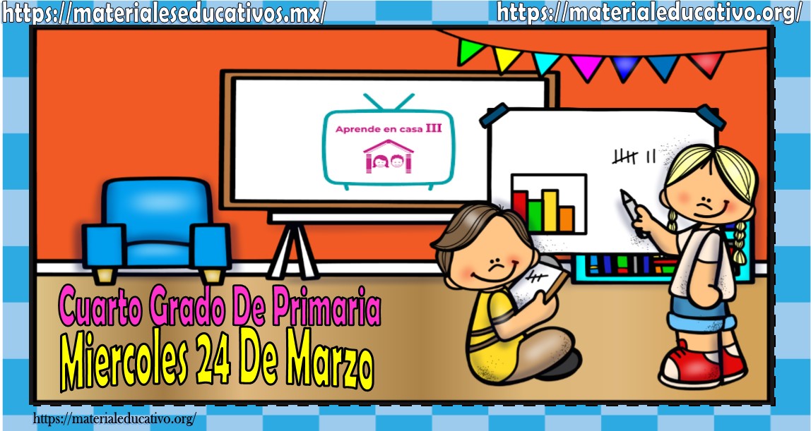 Amigos, compañeros docentes, padres de familia y alumnos que nos visitan, como ya es costumbre nosotros les proporcionaremos las clases contempladas para observarse en la TV del programa aprende en casa III, lo que antes se conocía como videos y preguntas. En esta oportunidad les queremos proporcionar las clases del cuarto grado de primaria del miércoles 24 de marzo del 2021 del presente ciclo escolar 2020 – 2021, estaremos seguros que con este material podrá facilitar la realización de las actividades planteadas por parte del programa. Muchas gracias por visitarnos y recuerden que aquí podrán encontrar las preguntas, videos y todas las clases del programa de aprende en casa 2. Recuerden compartir nuestros enlaces en sus redes sociales y etiquetar a sus compañeros y amigos docentes en nuestras publicaciones.