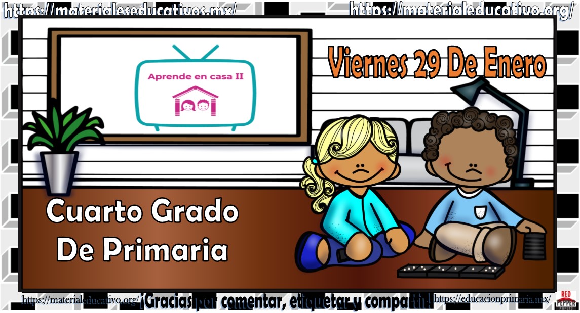 Amigos, compañeros docentes, padres de familia y alumnos que nos visitan, como ya es costumbre nosotros les proporcionaremos las clases contempladas para observarse en la TV del programa aprende en casa III, lo que antes se conocía como videos y preguntas. En esta oportunidad les queremos proporcionar las clases del cuarto grado de primaria del viernes 29 de enero del 2021 del presente ciclo escolar 2020 – 2021, estaremos seguros que con este material podrá facilitar la realización de las actividades planteadas por parte del programa. Muchas gracias por visitarnos y recuerden que aquí podrán encontrar las preguntas, videos y todas las clases del programa de aprende en casa 2. Recuerden compartir nuestros enlaces en sus redes sociales y etiquetar a sus compañeros y amigos docentes en nuestras publicaciones.