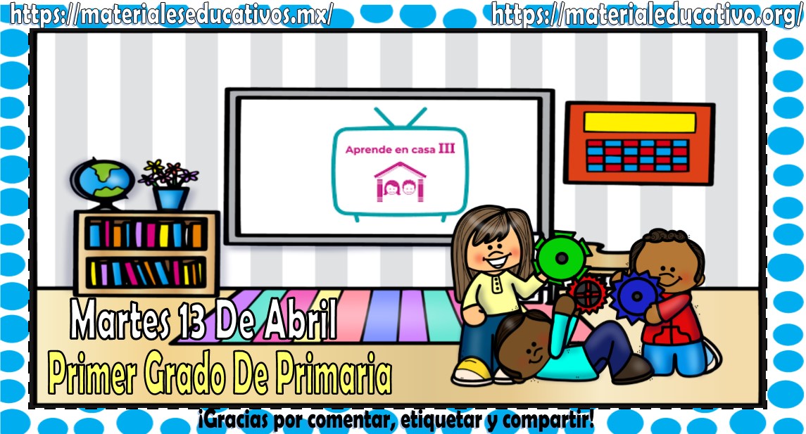 Amigos, compañeros docentes, padres de familia y alumnos que nos visitan, como ya es costumbre nosotros les proporcionaremos las clases contempladas para observarse en la TV del programa aprende en casa III, lo que antes se conocía como videos y preguntas. En esta oportunidad les queremos proporcionar las clases del primer grado de primaria del martes 13 de abril del 2021 del presente ciclo escolar 2020 – 2021, estaremos seguros que con este material podrá facilitar la realización de las actividades planteadas por parte del programa. Muchas gracias por visitarnos y recuerden que aquí podrán encontrar las preguntas, videos y todas las clases del programa de aprende en casa 2. Recuerden compartir nuestros enlaces en sus redes sociales y etiquetar a sus compañeros y amigos docentes en nuestras publicaciones.