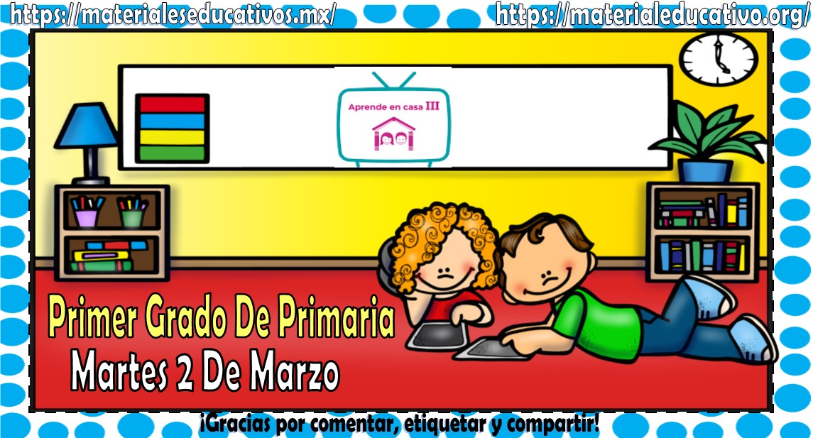 Amigos, compañeros docentes, padres de familia y alumnos que nos visitan, como ya es costumbre nosotros les proporcionaremos las clases contempladas para observarse en la TV del programa aprende en casa III, lo que antes se conocía como videos y preguntas. En esta oportunidad les queremos proporcionar las clases del primer grado de primaria del martes 2 de marzo del 2021 del presente ciclo escolar 2020 – 2021, estaremos seguros que con este material podrá facilitar la realización de las actividades planteadas por parte del programa. Muchas gracias por visitarnos y recuerden que aquí podrán encontrar las preguntas, videos y todas las clases del programa de aprende en casa 2. Recuerden compartir nuestros enlaces en sus redes sociales y etiquetar a sus compañeros y amigos docentes en nuestras publicaciones.