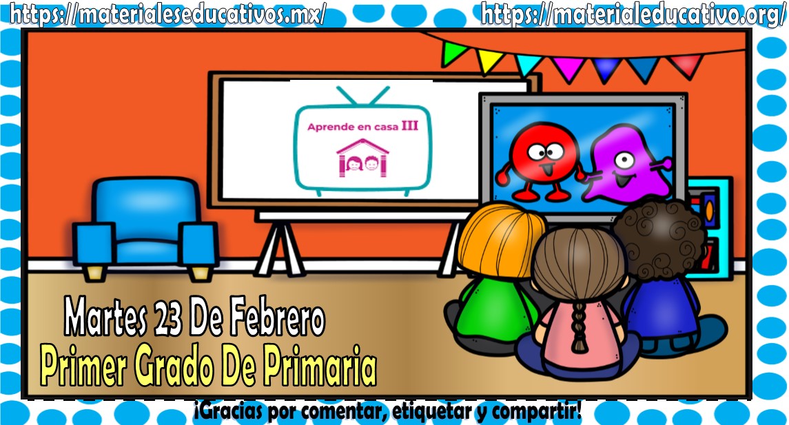 Amigos, compañeros docentes, padres de familia y alumnos que nos visitan, como ya es costumbre nosotros les proporcionaremos las clases contempladas para observarse en la TV del programa aprende en casa III, lo que antes se conocía como videos y preguntas. En esta oportunidad les queremos proporcionar las clases del primer grado de primaria del martes 23 de febrero del 2021 del presente ciclo escolar 2020 – 2021, estaremos seguros que con este material podrá facilitar la realización de las actividades planteadas por parte del programa. Muchas gracias por visitarnos y recuerden que aquí podrán encontrar las preguntas, videos y todas las clases del programa de aprende en casa 2. Recuerden compartir nuestros enlaces en sus redes sociales y etiquetar a sus compañeros y amigos docentes en nuestras publicaciones.