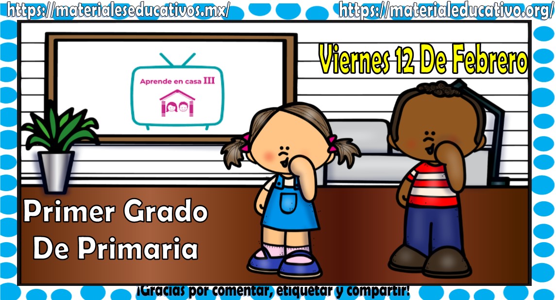 Amigos, compañeros docentes, padres de familia y alumnos que nos visitan, como ya es costumbre nosotros les proporcionaremos las clases contempladas para observarse en la TV del programa aprende en casa III, lo que antes se conocía como videos y preguntas. En esta oportunidad les queremos proporcionar las clases del primer grado de primaria del viernes 12 de febrero del 2021 del presente ciclo escolar 2020 – 2021, estaremos seguros que con este material podrá facilitar la realización de las actividades planteadas por parte del programa. Muchas gracias por visitarnos y recuerden que aquí podrán encontrar las preguntas, videos y todas las clases del programa de aprende en casa 2. Recuerden compartir nuestros enlaces en sus redes sociales y etiquetar a sus compañeros y amigos docentes en nuestras publicaciones.